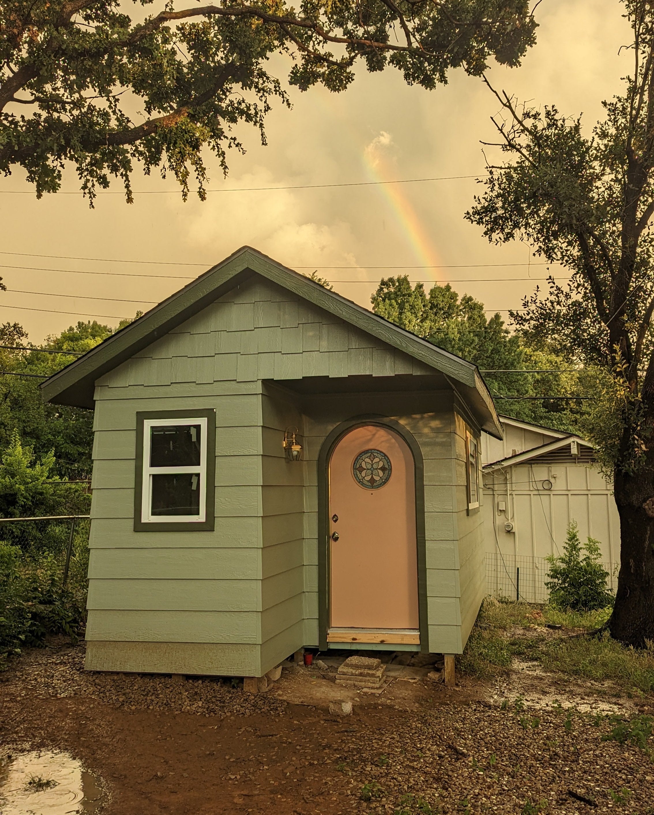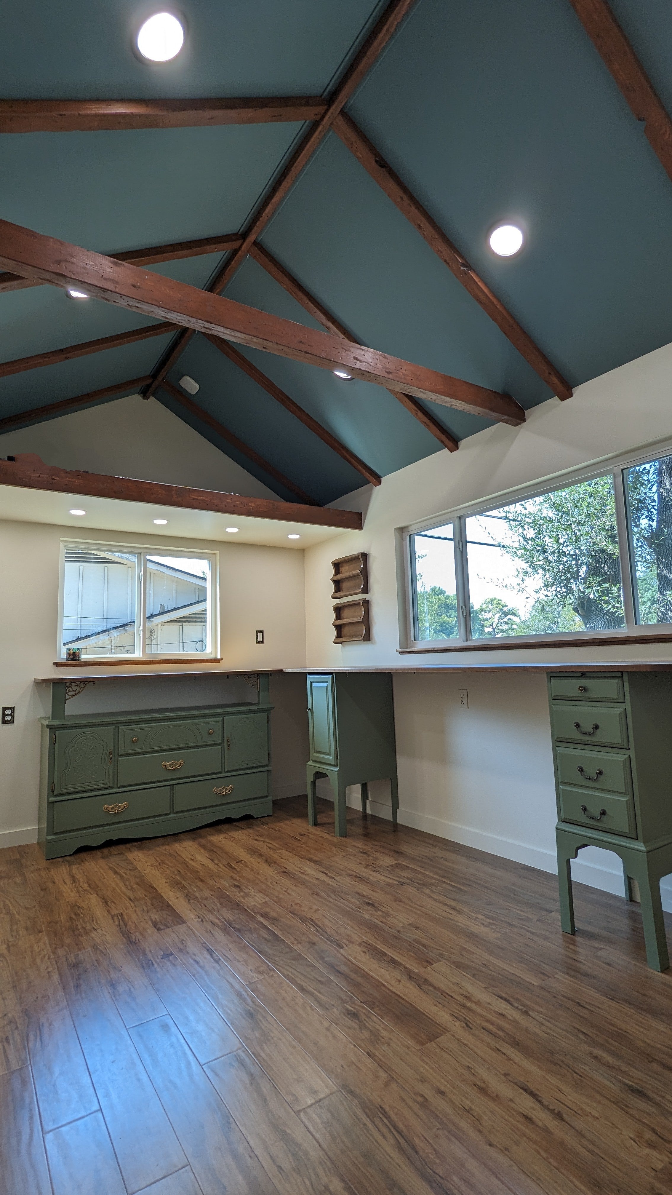 I’m so incredibly grateful for my family. Tobias, my husband, did all the wiring for me and was always ready to help when we needed and extra hand. Amy was always ready to add extra magic to my ideas and was there as often as she could be to help. So much of what’s charming about my space was her idea. My dear, wonderful father was at my house almost every day working beside me, teaching me new skills, and putting in so many hours of work for the meager payment of lunch. Once, both my dad and sister worked on the studio without me.